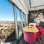 The 80 m^2 Hanza Tower Apartment No 2210 - 22Nd Floor, Swimming Pool, Jacuzzi, Panorama View is situated 6 minutes' stroll from University of Szczecin and offers a swimming pool. Welcoming guests with a hot tub, a sauna, and an indoor pool, the 1-bedroom apartment lies within walking distance of Papugarnia Carmen Szczecin.